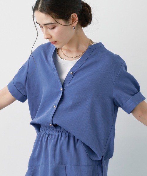 リネンライクで涼し気なスキッパーブラウス麻の様な見え感の軽くて涼し気な素材のブラウス。スキッパーデザインでお顔周りはすっきり見え効果も。フロントのボタンが華やかさをプラス。袖の長さもあり上品さもある一枚。ベーシックなデザインでオンオフ活躍してくれます〇一枚着でも羽織としてもお使いいただけ、デイリーに使いやすいおすすめのアイテムです!・・・・・・・・・透け感:やや透ける伸縮性:なし生地の厚さ:普通裏地:なし■手洗い可ホワイトで計測しています。※こちらは参考情報となります。カラーにより多少の誤差がございます。※商品の取り扱い方法につきましては、タグ等に記載されている「取り扱い上の注意」「洗濯表示」をご確認ください。・・・・・・・・・【SALOON】―Effortless chic―心地よい素材でその時々の気分をカジュアルスタイルで表現、BASICアイテムをベースに様々な場面に活躍できるファッションを。”今の自分”と”新たな自分” これまでも、これからも素敵な自分に。をテーマにしたブランドです。お買い物をお得にもっと楽しく!上手な活用方法>>>♡商品のお気に入り登録▼完売カラーの再入荷通知や、ラスト1点の通知、プライスダウンしたセール通知も受け取ることができます!♡ブランドのお気に入り登録▼新作や再入荷等、いち早くブランドのお得な情報を受け取ることができます。【ご注意】・屋外の光や照明の当たり具合で、実際の商品の色味とカラー別画像の色味に若干の違いが発生する場合がございます。 詳細画像と併せてご確認の上、ご注文いただきますようお願い致します。