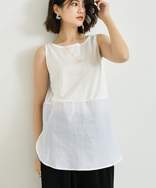 シンプルで使い勝手のいい裾メッシュ切替ノースリーブトップス。一枚着としてはもちろん、Tシャツやカーディガンのインナーとしても◎コーデになじむベーシックカラーも魅力です。プチプライスなのも嬉しいポイントです。