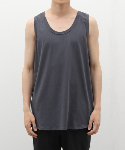 コットンの肌触りが心地良いタンクトップ。インナーとして抜群の使い勝手の良さと、ラウンドした裾がレイヤードした際にポイントになる仕上がりです。単調になりやすい春夏のスタイリングにとてもオススメなアイテムです。モデルサイズ:身長:179cm 着用サイズ:L本体:洗濯機洗い(弱)