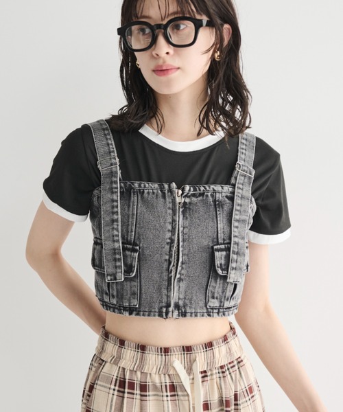 ヴィンテージムード漂う色落ち加工が魅力のデニムビスチェ ■ポイント ・調節可能なショルダーストラップ ・バックゴム仕様で程良いフィット感とギャザーディテールをプラス ・フロントジップがレイヤードのアクセントに …………………… 透け感 : 無し 厚さ:普通 伸縮性:あり お手入れ方法:手洗い推奨 …………………… ■デザイン/素材 スタイリングのプラスワンにおすすめのヴィンテージライクなデニムビスチェ。 ワンポイントのフロントジップがスタイリングのアクセントに。 調節可能なショルダーストラップとバックゴムでご自身に合ったサイズ感でご着用いただけます。 ■スタイリング インナー次第で様々なレイヤードスタイルをお楽しみいただけます。 どんなアイテムとも相性の良いデニム素材は、いつものスタイリングにプラスするだけでこなれ感のある印象に。 デザイン性のあるビスチェなので、キャミソールやチューブトップに重ねて一枚での着こなしもおすすめです。 ※ご注意※ ・屋外の光や照明の当たり具合で、実際の商品の色味と カラー別画像の色味に若干の違いが発生する場合がございます。 ・詳細画像と併せてご確認の上、ご注文いただきますようお願い致します。 【MERLOT】 ジャンルレス、ジェンダーレスをテーマにヴィンテージライクからモダンなアイテムまで幅広く展開。 メンズとレディース、カジュアルとモード。あらゆる境界を取り払うミックススタイルを提案します。 【商品のお気に入り登録】 完売カラーの再入荷通知やラスト1点の通知、プライスダウンの通知を受け取ることが出来ます。 【ブランドのお気に入り登録】 新商品や再入荷など、嬉しい情報を受け取る事が出来ます。 ぜひご登録ください◎