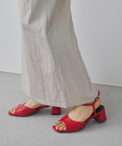 【ストラップカラーヒールサンダル】オンからオフまでマルチに活躍するヒールサンダルやや広めに甲を包んでくれるアッパー部分と華奢なストラップでメリハリのあるデザイン。スタイリングになじみやすいスクエアトゥを採用しました。安定感抜のブロックヒールで歩きやすさも◎スタイリングに溶け込みながら上品さと抜け感を演出してくれます。足当たりが良くカジュアル過ぎない品のあるフェイクレザーと引っ掛けタイプの留め具(調節可能)を使用。ミュールタイプのデザインなので着脱が楽なのも嬉しいポイント。素足ではもちろん、ソックスを合わせるのもおすすめです。カジュアルからきれいめスタイルまで様々なスタイリングにマッチ。春夏だからこそ足先のネイルとのコンビネーションも楽しめる1足です。素材 / 合成皮革【サイズ】アウトソール幅:8.5cm甲幅:最大10cmヒールの高さ:5.5cm【スタッフ着用レビュー】足のサイズ : 25cm 着用:L size 足幅:広め甲幅が広めでLサイズで丁度良いです。ストラップが調節できるのも良かったです!ヒールも太くて安定して歩けます。※履き心地には個人差がございますので、あくまでも目安としてご覧ください。<返品・キャンセルについて>・着用・洗濯後の返品・ご交換は致しかねます。・商品到着後、着用前に商品を確認して頂きますようお願い致します。【商品のお気に入り登録】完売カラーの再入荷通知やラスト1点の通知プライスダウンの通知も受け取ることができます。ぜひご登録ください◎【ブランドのお気に入り登録】新商品や再入荷など、ブランドの情報をいち早くお知らせします!ぜひご登録ください◎※ご注意※・屋外の光や照明の当たり具合で、実際の商品の色味とカラー別画像の色味に若干の違いが発生する場合がございます。・詳細画像と併せてご確認の上、ご注文いただきますようお願い致します。