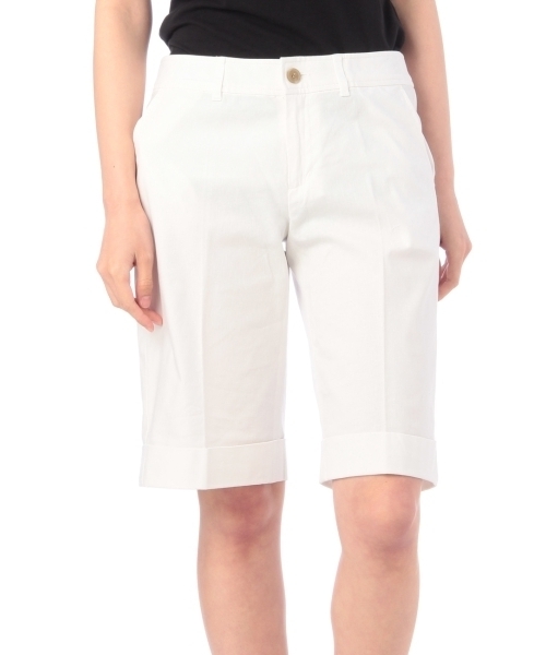 メンズライクな裾折れのボックス型のショートパンツです。麻混の上質なコットン素材がカジュアルながら高級感ある雰囲気に仕上げています。トップスや靴などに女性らしさをプラスしたミックススタイルがおすすめです。モデル情報:身長166cm B78W58H86 着用サイズ:02(M)店舗へのお問い合わせ商品番号:511-66012主に夏に着用いただける商品です。サイズスペック●製品寸法:01(S):W72 H90 股下31 前股上20 渡り幅30 裾幅2602(M):W76 H94 股下32 前股上20 渡り幅31 裾幅2603(L):W80 H98 股下32 前股上21 渡り幅32 裾幅28