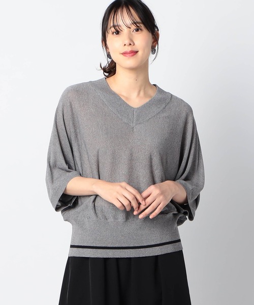 ライン入りVネックサマーニット ドライタッチで涼しいシアーVネックニットです。 太めのVネックデザインと裾のワイドリブに入ったカラーラインがデザインポイント。 カジュアルな印象で着用して頂けます。 袖丈は半袖よりも長めの5分袖設定なので、夏の始まりから秋までシーズン長く着て頂けます。 素材に落ち感があるので、ボリュームを気にせずスッキリした印象です。 ■point 暑い夏にTシャツの様に着用して頂けるようなデイリー使いしやすいVニットです。 デニムと合わせた時にTシャツに比べてよりアップデートしたカジュアルスタイルを楽しんで頂けます。 袖は肘までかかる5分袖、長さは腰が軽く隠れるコーディネートしやすい着丈です。 ■detail *襟元の太Vと裾のワイドリブがデザインポイント *表情のある杢調 *ご自宅での手洗いが可能です。 ■fabric …………………… 透け感:あり 伸縮性:あり 光沢感:なし 生地の厚さ:薄い 洗濯方法:手洗い可 …………………… ※詳しいお手入れ方法は商品タグをご参照ください ■coordinate *多少透け感があるので、タンクトップやキャミソールと合わせてコーディネートが楽しめます。 *パンツにもスカートにも合う着丈です。 【Grand PARK 】 グランドパーク ベーシックをより着やすく毎日楽しめる服、 普段身に着けるカジュアルベーシックを品質、着心地にこだわり 着回しのきくフレキシブルさを追求しています。 【お買い物をお楽しみいただく為に】 ▼商品のお気に入り登録 完売カラーの再入荷通知や、ラスト1点の通知、セールの通知も受けることができます。 ▼ブランドのお気に入り登録 新商品や再入荷等、いち早くブランドのお得な情報を受け取ることがきます。