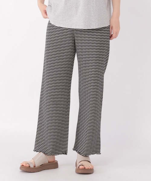 ーーー今年らしいスタイリングに使える、柄のカットパンツ。身体のラインを拾いすぎない綺麗なストレートシルエットが特徴。大人っぽいブルーとオレンジの花柄、使いやすい白黒ボーダーの3柄展開です。ウエストは紐で調整出来るので、ストレスフリーなのも嬉しいポイント♪ーーーチュニック丈のワンピースやブラウス合わせがおすすめです。レイヤードパンツとしてワンピースの裾からチラ見せしたスタイリングも◎【素材】ブルーフラワー01,オレンジフラワー02綿60% ポリエステル40%ブラック×オフホワイト03綿50% ポリエステル45% ポリウレタン5%