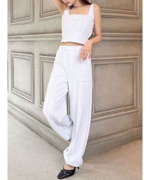 毎年定番人気のスウェットパンツ▽デザイン▽カジュアルな素材ながらもセンタープレスが美脚効果を高め、女性らしいシルエットに仕上げました。今季は少しオーバーサイズにすることでトレンドムードのあるアイテムに仕上げました。スッキリとしたシルエットでカジュアルになりすぎず着用していただけます。ハイウエストなのでお持ちのアイテムと合わせやすく、スタイルアップ◎▽カラー▽黒・ライトグレー・チャコールグレーの3色展開▽スタイリング▽同素材のトップスと合わせればセットアップとして着用可能!クロップド丈のトップスと相性抜群で挑戦しやすいアイテムです。カジュアルな印象のアイテムなのでシューズやアクセサリーで女性らしさを残したコーデがオススメです!【セットアップアイテムはコチラ】152442734501:スウェットコルセットトップス