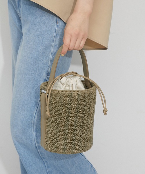 収納力も旬ムードもたっぷり。異素材の組み合わせで、抜け感のある大人のコーディネートを楽しめるバケツバッグ◇2024春夏◇ADAM ET ROPE' FEMME【Material】表地には表面感のある軽やな生地と裏地には抜け感のあるキャンバス生地を使用。【Design】季節感のある生地がポイントのバケツバッグ。春夏の気分が高まる、異素材コンビのデザインが魅力。程よいミドルサイズで見た目以上に収納できるサイズ感に、大人のスタイリングに馴染むカジュアル過ぎないデザインもおすすめ。【Color】ベーシックで使い勝手の良いブラックと、女性らしさのある落ち着いたニュアンスカーキの2色展開。----------------ポケット:あり(内1個)A4収納:不可長財布収納:可---------------