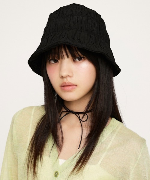 ■POINT:しわ加工を施した表面感のある素材を使用したバケットハット。■DETAIL:かぶりやすいサイズ感になっており、サイズ調節機能付きです。■STYLING:シンプルなスタイリングにプラスするだけでポイントになるアイテム。デイリー使いしやすいブラックとオフホワイトの2色展開。※素材の特性上、使用中他の物との摩擦(特に湿った状態での摩擦)により色落ちや色移りすることがありますので十分ご注意ください。 ※商品画像はサンプルのため、色味やサイズ、素材の混率等の仕様に変更がある場合がございますので、予めご了承ください。 ※一部予約商品につきましては生産上の都合によりお届け予定日や店頭発売と前後する場合もございます。 ※追加生産商品は、一部の店舗、通販で販売中の場合がございます。予めご了承下さい。【SLY/スライ】「Casual」「Girly」「Mode」をベースに発信する、ディテールへのこだわりが詰まった、どこか必ず女性らしさを感じるアーバンスタイル。 さまざまなエッセンスをミックスした、時代の空気を体現するコレクションを展開。 ▼商品のお気に入り登録 お気に入りアイテムの値下げ・再入荷・在庫1点などの通知を受け取ることができます。 ▼ブランドのお気に入り 登録新商品や再入荷、セール、クーポン配布などお得な情報を受け取ることができます。