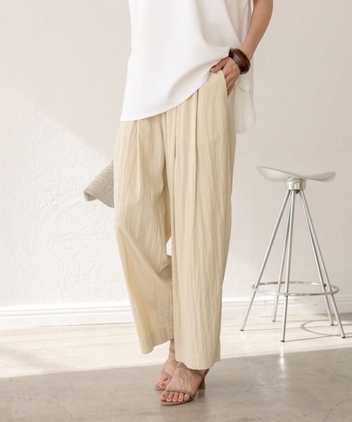 さらっと着やすいイージーパンツ ●デザイン さらっとした素材感と表面感のある立体的な生地が印象的なイージーパンツ。 ウエスト部分はゴム仕様になっており、窮屈感の少ないリラクシーな着心地となっております。 程よくゆとりのあるワイドなシルエットで動きやすく、シンプルなアイテムと合わせてもコーデのポイントになってくれる一枚。 シャツやメッシュニットなど素材感の異なるアイテムと合わせると抜け感が出ておすすめです。 洗濯方法: 透け感:カラーによってややあり 裏地:なし 伸縮性:あり(ウエスト部分) 生地の厚さ:ふつう 光沢:なし ファスナー:なし ポケット:あり ========================== 【注意点】 ※画像の商品は光の照射や角度、お使いのモニター環境により、実物と色味が異なる場合がございます。 あらかじめご了承下さいませ。 ※入荷状況により、お届け予定が前後する場合があります。 ※お客様への発送が店頭販売より遅れる場合もあります。 ※追加生産商品は、一部の店舗、通販で販売中の場合がございます。 予めご了承下さい。 ========================== 【お買い物をもっと便利に楽しく♪】 『♡』をクリックでお気に入り登録 ✓「商品のお気に入り登録」で・・・ ラスト1点や再入荷の通知が届きます。登録して頂いた商品だけが対象となる、あなただけのタイムセールが開催されることも! ✓「ブランドのお気に入り登録」で・・・ 新商品や再入荷など、いち早くブランドのお得な情報を 受け取ることができますので、ご登録をおすすめします! ==========================