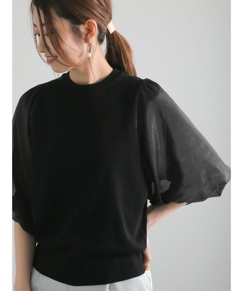 透け感のあるシアー素材で仕立てられたバルーンスリーブが可愛らしいニット。 クルーネックのデザインが首周りにやさしくフィットしてくれます。 タックインはもちろん、タックアウトスタイルもおすすめ◎ 暖かい季節のお出かけシーンに大活躍してくれるアイテムです。 ※商品画像は、撮影環境やお客様のご利用のPC・スマートフォンのモニター環境などにより実物と色味に差異がある場合がございます。