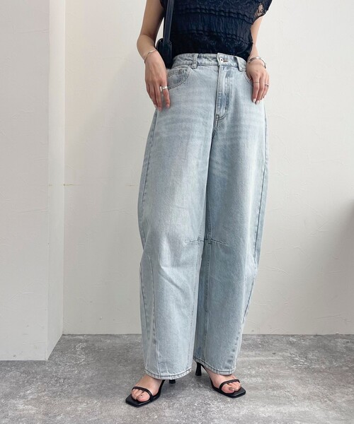 ◇fredy emue◇ 【2024 SS】 大人なカーブラインシルエットがポイントの主役級デニム ●point ・程良くゆるさとボリュームを出してシルエットにこだわったカーブデニムパンツです ・夏に向けてシンプルなトップスとも相性が良いアイテム ・膝位置の内側にタックを入れることで生まれるカーブラインがポイント ・トレンド感のあるシルエットで、シンプルコーデが今っぽくなる主役級の1枚 ・ヒップラインや脚のラインなどの気になる部分をカバーしながら、裾にかけて細身になるシルエットが魅力 ・ワイドなのにダボっと見えないオトナなシルエットに仕上げています ・カジュアルなアイテムですが、綺麗めなトップスとも相性がよく、ブラウスと合わせた大人っぽい着こなしもオススメです 透け感:なし 裏地:なし 伸縮性:なし 光沢感:なし 洗濯:手洗い可 ●お取扱い上のご注意● *商品を長くご愛用していただきたいため、アテンションタグがある場合は必ずご確認の上、着用又はお取り扱い下さい。 *画像の商品はサンプルとなりますので実際の商品と仕様(主にファスナー・釦等の付属品)、加工、サイズが若干異なる場合がございます。 *店頭及び屋外での撮影画像は、光の当たり具合で色味が違って見える場合があります。商品の色味は、スタジオ撮影の画像をご参照下さい。 *商品画像に関しては出来る限り忠実に表示出来るよう努めておりますが、お客様がご利用のモニターの設定及び特性により、実際の商品と比較し色味に若干の誤差が生じる場合があります。 *製品洗い加工の商品は、多少の歪み、シワなどが見られたり、風合いやサイズ等が1枚1枚異なります。汗や雨等で濡れた時や、摩擦により色落ちし、他の衣料を汚すことがありますので(特に濃色のもの)ご注意ください。 ◇商品のお気に入り登録◇ 【お気に入りに登録 ♡マークをクリック】を是非ご活用ください! 再入荷の通知や、ラスト1点の通知、セールの通知がいち早く届きます。 ◇ブランドのお気に入り登録◇ 新商品や再入荷など、いち早くブランドのお得情報が届きます。