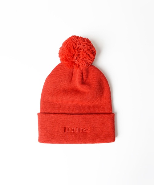 HOLIDAYロゴ刺繍入りのアクリル素材のポンポンニットキャップ。
