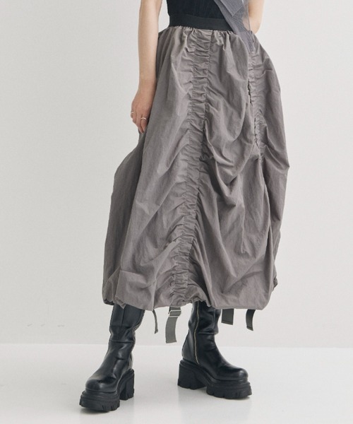 〈デザイン〉・ボリューミーなバルーンシルエットのスカート・ドライタッチなナイロン素材で普段使いしやすいカジュアルな雰囲気・ウエストゴムで着心地が良いのも嬉しいポイント・前後に入ったベルトを絞り、丈やギャザーを好みの雰囲気に調節可能・フロントをしっかり持ち上げて着用するのもおすすめ〈素材〉透け感:なし裏地:あり伸縮性:あり洗濯:手洗い可能メーカー品番:2224221038-0MECREクールさとカジュアルさをMIXしたスタイルをディレクターMAIが提案するライフスタイルブランド。----------------------------------------------------【お買い物をよりお楽しみいただく為に】▼商品のお気に入り登録をおすすめします!♡をクリックしてください。完売カラーの再入荷や、ラスト1点の通知、セールの際の通知を受ける事ができます。ブランドのお気に入り登録もご一緒にお願い致します。