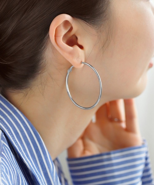 「ステンレス素材」のアクセサリーは、金属アレルギーや変色を起こしにくくデイリー使いにぴったりの優秀アイテム。 大きめのフープデザインが、横顔を大人っぽい印象に導くピアス。 シンプルで定番のデザインは、飽きのこない万能アイテムとして活躍します。 ※ATTENTION※ ■微細なキズや製造ムラはすべての商品に含まれます。 ■【ゴールド】は変色しにくい加工を施しておりますが、ご使用状況によっては変色する場合がございます。 ご使用後は柔らかい布などでふき取りのお手入れや、メッキ製品同様の付け外しをお勧めいたします。 ■全ての方がアレルギーを起こさないという保証はできかねますので、万が一肌に合わない場合はご着用をお控えください。