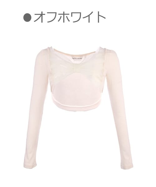 最旬マイクロミニ丈のショートボレロ 胸元の透明感あるデカリボンがアクセントに ワンピースやキャミに合わせると、ガーリーにも バレエコアにもなれちゃう最強レイヤードコーデの完成 あか抜け間違いなし!夏のSweetガーリー参戦服 カラーは「オフホワイト」1色のみの展開