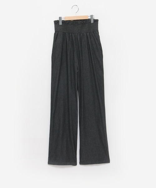ウエストデザインがポイントのデニムワイドパンツです。 脚のラインを拾わない程よい太さのワイドシルエットは合わせるトップスを選ばず、バランスが取りやすいのが特徴。 腰周りはゴム仕様にしており、ストレスフリーに着用いただけます。 【おすすめの着用時期は春夏シーズン】 【透け感】透けない 【生地の厚さ】普通 【伸縮性】なし 【裏地】なし 【ポケット】あり 【アジャスター】なし