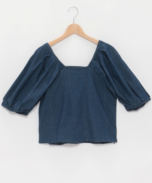 デニム生地でカジュアルに仕上げたチュニックです。 ボリュームのあるバルーン袖が上品な可愛らしさを演出。 左裾のファスナーを開けることで、スリットのさりげない抜け感をプラスできます。 シンプルな無地デザインなので着こなしやすく、幅広いスタイリングを楽しめる優れものです。 【透け感】透けない 【生地の厚さ】普通 【伸縮性】なし 【裏地】なし 【ポケット】なし