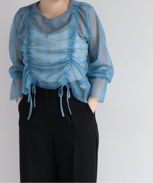 今年の夏の主役はこれで決まり!華奢なリボンでお好みの丈に調節できる、チェック柄シアートップス。 ◇Point◇ パッと目を惹くシャーリングデザインが 女性らしいチュールプルオーバー。 フロントのドロストシャーリングを絞って着丈の調整ができ、 着るだけでワンランク上のスタイリングが完成します! ◇Material◇ 肌触りが良く着心地抜群なポリエステル素材。 デリケートな素材ですので、お取り扱いには十分にご注意ください。 ◇Coordinate◇ ボトムを選ばない今年らしいコンパクトトップス。 ショート丈なのでバランスが取りやすく、 デニム合わせの大人カジュアルからフレアスカートで上品なスタイリングにも◎ ※照明や天候により実際の色味と異なって見える場合がございます。ご了承くださいませ。
