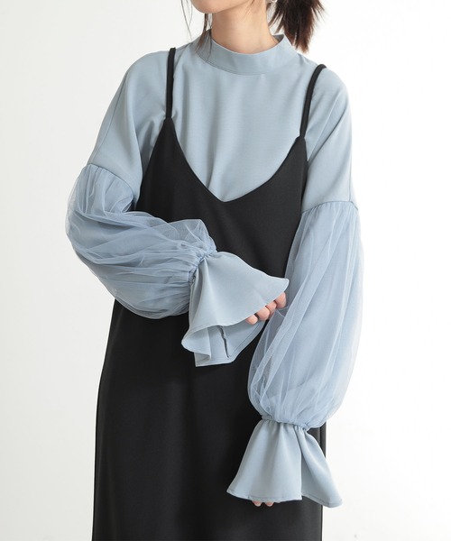 チュール重ねのデザインスリーブが華やか。デイリーにも取り入れやすいトップス。シアー感を重ねた袖のデザインがポイント。すっきり見えてトレンド感も出せるハイネック。キャミワンピやサロペットとの重ね着もおすすめ。着丈が長すぎないので合わせるボトムスを選ばない。生地や服の特徴伸縮性 : 袖口のみ伸縮性がございます。透け感 : アイボリーはやや透け感がございます。裏地 : なしポケット : なし肌触り : さらりとした肌触りMスタッフが着用してみました。◆身長:160cm 着用サイズ:M 普段の着用サイズ:M◆着丈(最短位置) : 裾位置はヒップ真ん中くらい身幅 : 大きめアームホール : 大きめLスタッフが着用してみました。◆身長:163cm 着用サイズ:M 普段の着用サイズ:L◆着丈(最短位置) : 裾位置は腰くらい身幅 : 大きめアームホール : 大きめ《便利な機能のご紹介》◇商品のお気に入り登録完売カラーの再入荷通知、ラスト1点の通知、セールの通知を受け取ることができます。◇当ショップのお気に入り登録新商品&再入荷等、イベント等のお得な情報を受け取ることができます。