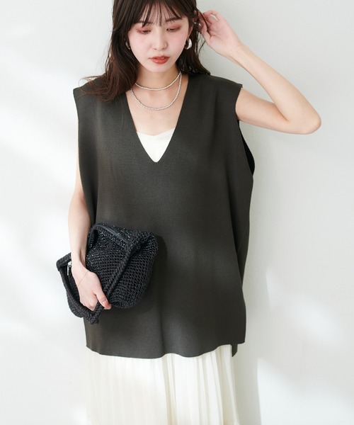 【2024SS natural couture】 インフルエンサー アコ(@ako_nt)考案 すっきり着痩せVネックニット ■Design Vネックですっきり、丈は長めのリラックス感のあるデザインで おしゃれに体系カバーできるようなデザインとなっております。 袖は真っすぐストンと切り落としたような形で肩の丸みを拾いにくく すっきりとした直線のシルエットが出るようにこだわりました。 ■Styling セットでお作りしているパンツでも合わせていだたけるのはもちろん、 パンツならワイド、デニム、スキニー全般。 スカートならタイトやマーメード、腰回りがすっきりしたシルエットのものと 合わせていただくのがおすすめです。 深めのVネックなのでカップ付きインナーがあると綺麗にお召いただけます 。 ■Fabric 伸縮性のあるニット素材。 リブではなくフラットな生地感なのでボディラインを拾いにくくなっております。 ■Series 0341020340 ネップヤーンニットパンツ ========================= お手入れ方法:手洗い 透け感:なし 裏地:なし 伸縮性:あり 光沢感:なし 生地感:伸縮性のあるフラットなニット素材 ========================= ※着用、お取り扱いの際は、商品に付いている品質表示とアテンションタグを必ずご確認ください。 【お気に入り登録でお得な情報がいっぱい】 ・「商品のお気に入り登録」で再入荷通知や、ラスト1点の通知、セール通知をいち早く受け取ることができます。 ・「ブランドのお気に入り登録」で新商品や再入荷など、お得な情報を受け取ることができます! ※店舗の入荷時期は商品によって異なります。 店頭の在庫状況につきましては各店舗にてお問い合わせください。 ※撮影時の光の関係で、画面上の画像と実際のお色とでは若干の色差が生じる可能性がございます。 また、ご覧いただいているモニター画面や、お使いのブラウザによっても、お色の違いがございますことをあらかじめご了承くださいませ。