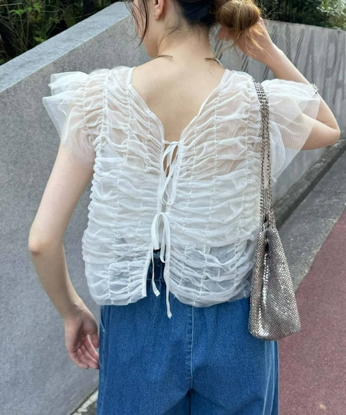 着るだけでグッとトレンド感アップ!女性らしいふんわりシルエットが魅力のベスト■デザインふわっとしたボリューム感がかわいいチュールベストが登場。シャーリング×チュールで、トレンド要素がたくさん詰まった1枚に仕上がりました!程よい透け感で、ヘルシーさと女性らしさをプラス◎前後2WAY仕様になっているため、気分によって楽しむことができます♩合わせるインナー次第で、ロングシーズン着用できる万能アイテムです。■スタイリングロゴTEEと合わせるだけで甘めカジュアルコーデに♩カーゴパンツや、スラックスと合わせた、甘辛MIXコーデもおすすめです!夏はインナーにキャミソールやタンクトップと合わせてヘルシーコーデにも◎■お手入れ方法洗濯:洗濯ネットを使用し、洗濯機の手洗いモード可(蛍光増白剤不可)タンブル乾燥:不可アイロン:あて布を使用し、110℃まで可・・・・・・・・・・・・・・・・・・・・・・透け感:あり裏地:なし伸縮性:あり光沢感:なし生地の厚さ:薄い・・・・・・・・・・・・・・・・・・・・・・▼気になる商品を登録ハートをクリックして《お気に入り登録》がオススメです!セール情報や完売カラーの再入荷通知、ラスト1点の通知などを受け取ることができます!▼ブランド新商品や再入荷など、ブランド情報をいち早く受け取ることができます!※画像の商品はサンプルを使用しております。実際の商品と若干の仕様が変更になる場合がございますので、予めご了承の上ご注文くださいますようお願いいたします。