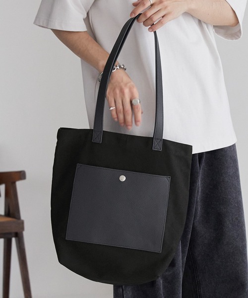 本体とポケットの素材をコンビネーションでデザインした当ブランドこだわりのトートバッグ!フェイクレザー、キャンバス、ナイロンキルティングのベース3タイプの素材から選べ、様々なスタイリングにも合わせやすいです。デイリーユースを考え、A4サイズの書類やノートパソコン、500mlペットボトル、折りたたみ傘などが収まる使いやすさも考えた仕様になっています。 ■スクエア型でサイズ感もパーフェクト!オールシーズンで活躍します。 【ブラック】: 素材には、マットなツヤ感とシボ感が特長のフェイクレザーを採用しました。本革よりも軽量で小さな傷が目立ちにくく、お手入れも簡単です。 【ブラック系1】: 本体メイン部分には、厚みとハリ感を兼ね備えたコットンキャンバス生地を採用しました。フェイクレザーのアウトポケットとハンドルがアクセントを効かせています。 【ブラック系2】: 本体メイン部分には、軽やかなナイロンで仕立てダイヤ柄キルティングパデッド生地を採用しました。ふんわりとした中綿入りでボリューム感を持たせたのがポイント。フェイクレザーのアウトポケットとハンドルがアクセントを効かせています。 ■しっかりとしたマチ付きで見た目以上の収納力を発揮! メインの収納部分は荷物の出し入れも開閉もスムーズなマグネットタイプ。フロントポケットの他に、本体内側にもスマホや鍵など、ちょっとした小物やアクセサリーなどの整理に便利なオープンポケットを追加しました。 通勤、通学にもぴったりなアイテムです。 【気になる商品はお気に入り登録をおススメ】 ▼商品のお気に入り登録 完売カラーの再入荷通知や、ラスト1点の通知、セールの通知などお得な情報が受け取れます! ▼ブランドのお気に入り登録 新商品や再入荷など、いち早くブランドのお得な情報を受け取ることができます。