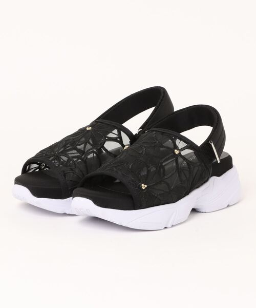 トレンド感のあるチュールレースを使ったスポーツサンダルです。適度な抜け感は暖かい季節にぴったり!ソックスとの相性も良く、ロングシーズン使用できます。厚底なので美脚効果◎