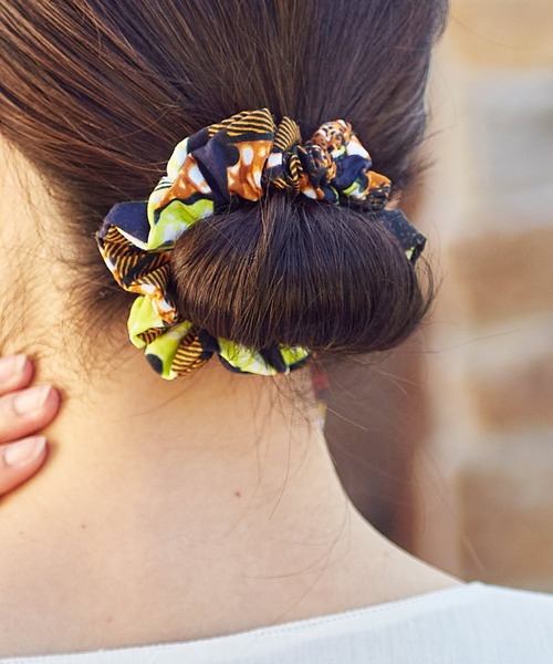 アフリカン柄のミニシュシュ。太陽の陽射しにも映える色鮮やかなデザインです。ヘアアレンジのアクセントに◎ ※こちらの商品は1点1点職人による手作りとなります。その為、生地の取り方により柄の配置や形・色合いなど若干個体差がございます。(画像は一例です。)あらかじめご了承ください。 Amina Collection Co.,LTD.