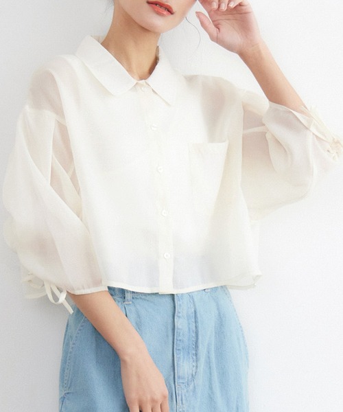 <袖のシャーリングが可愛い定番のシアーシャツ> ▼デザイン 袖に大き目のシャーリングデザインがあしらわれたシャツ。 全体的にシンプルなデザインで、大人目コーデにピッタリです。 袖口からバックスタイルまで、シャーリングデザインで絞られているので、ケープ見えシルエットにも◎ ▼コーディネート キャミワンピースの上に羽織ったり、マーメイドスカートの上に着ると、可愛らしいコーデに! シンプルな分、着こなし次第で印象をがらりと変えられるアイテムです。 ----------------------------- 生地感:薄手 伸縮性:なし 透け感:あり 裏地:なし ------------------------------ ▼ブランド紹介 RETRO GIRL (レトロガール) 自分らしい“ベーシックアイテム”と 新しい自分の”トレンドアイテム”が 見つかる場所 今らしいファッションを楽しむ 女性のためのブランド #シャツ#シャツコーデ #シャーリング #袖リボン #フロントリボン #袖シャーリング #シアー ▼注意事項 ※撮影環境やモニター環境によって実際の商品とお色味が 多少異なってみえる場合がございます。 品番:RS437523T001 / 品名:Bギャザー袖シャーリングSH