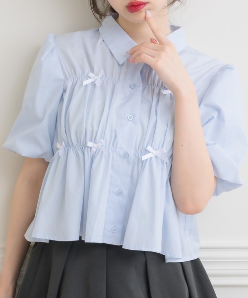 <オンライン限定で大人気のリボン×シャーリングのデザインシャツ>▼デザイン毎回大人気を頂くリボンアイテムは夏も継続!シャーリングされたデザインシャツにチビリボンが散りばめられたガーリーな1枚。バルーン袖がワンポイントで、ふわッと広がるペプラムシルエットが女の子らしい♪リボンとシャツの配色もカラーによって違うので、気分やコーデに合わせたスタイリングを楽しんで頂けます。▼コーディネートシャーリングとリボンというデザインを活かしたガーリーコーデがおすすめ!フレアスカートが定番ですが、あえてデニムでカジュアルダウンするのも◎------------------------------生地感:普通伸縮性:ある透け感:なし裏地:なし------------------------------▼ブランド紹介ems excite (エムズエキサイト)“more fun more cute”今をもっと楽しくもっと可愛くいたい女の子に向けたgirly cuteなブランド#リボン#メニーリボン#リボンシャツ #リボン#リボンデザイン#ガーリーコーデ▼注意事項※撮影環境やモニター環境によって実際の商品とお色味が多少異なってみえる場合がございます。品番:EM457123T002 / 品名:シャーリングリボンSH