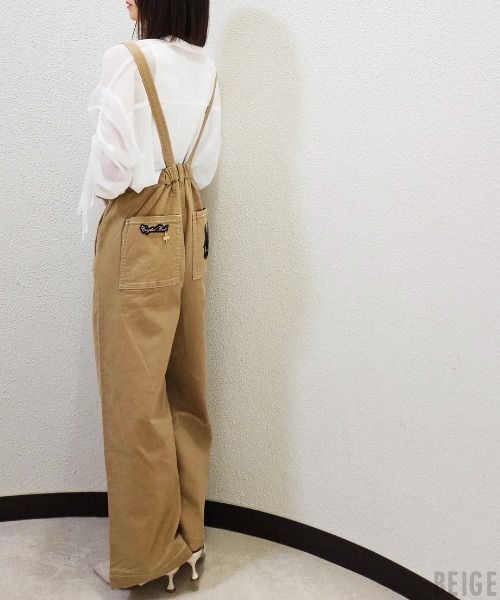 サロペットワイドパンツ【saroppet pants】深めのハイウエスト設計で、サロペット風に見えるデザインが特徴のワイドパンツです。ソフトな配色のステッチワークがアクセントに。ウエストはゆったりサイズ感でストレッチ素材なので穿き心地もストレスフリーな1枚です。肩紐は調節可能なので、自分好みの丈感に調節できるのも嬉しいポイントです◎生地も硬すぎず、柔らかすぎないしっかりとした生地感なので、コーデの主役になること間違いなさそうです!