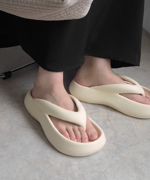 [ SS2024 / minia ] ぷっくりフォルムのボリュームサンダル ラフな足元でおしゃれ上級者に 柔らかいEVA素材のトングサンダルは 夏のスタイリングにぴったりのアイテム。 デニムやフレアスカートなど 大人カジュアルに合わせてタウン使いはもちろん、 海やフェス・アウトドアなど夏のおでかけにもぴったり。 ボリューミーなシルエットで 華奢足演出も◎ ラフなスウェットスタイルにも合うので ワンマイルサンダルとしても大活躍。 厚底でスタイルアップも叶う おすすめサンダルです。 ----------------- < カラー > ・ブラック ・アイボリー ----------------- < スペック(Mサイズ) > ●ヒール高さ…約4cm ●ストーム厚さ…約3.5cm ●片足重量…約120g ----------------- ※こちらの商品はビニール袋に入れてお届けします。 ----------------- < サイズ目安 > ●23.0cm…22.5~23.0cm程度 ●23.5cm…23.0~23.5cm程度 ●24.5cm…24.0~24.5cm程度 ●25.0cm…25.0~25.5cm程度 ----------------- < サイズ感 > 小さい □□■□□ 大きい < 足幅 > 狭い □□■□□ 広い < やわらかさ > 柔らかい □■■□□ 硬い ----------------- < スタッフが素足で試着しました > 【22.5cm 幅広甲普通 普段SかMサイズ】 ⇒23.0cmがぴったり 【23.0cm 普通足 普段Mサイズ】 ⇒23.0cmは少し指が出るので23.5cmを選びます。 甲周りはゆとりがあるけど、足長ぴったり。 【23.5cm 幅広甲高 普段MかLサイズ】 ⇒23.5cmがぴったり。 ----------------- < おすすめのサイズ選び > ●幅狭も普通足も幅広甲高もいつものサイズを選びました。 ※ゆとりを持って履きたい方・足の指が長い方はワンサイズアップも◎ ----------------- ●材質…EVA ●原産国…中国 ----------------- minia/ミニア いつものコーデにプラスするだけでトレンド感がUPするようなアイテムを提案。結婚式やパーティ・二次会などオケージョンシーンや通勤・オフィスカジュアルでも使えるシンプル上品なアイテムから、普段のおでかけ・通学でデイリーに使えるカジュアルな定番アイテムまで幅広くラインナップ。 靴・バッグをはじめ、イヤリング・ピアス・ネックレス・ヘアゴムなどのアクセサリー/ヘアアクセサリーなど、韓国ファッションで人気のアクセ・雑貨も取り扱っています。プレゼント/贈り物/お返しにもぴったり。 試しやすいプチプライス~素材や機能性にこだわったアイテムもご用意。また、靴箱に再生紙を使用するなど環境に配慮したサステナブルなものづくりに取り組んでいます。姉妹ブランドに『alala』『Una gardenia』『Hercheek』。 ※お使いのモニターや閲覧環境により、実際の色味と違って見える場合がございます。 ※生産時期により僅少なサイズ感のブレ・色ブレが生じる場合がございます。生産工程上やむを得ないことであり不良ではございません。予めご了承くださいませ。 ※素材の特性上、色移行が生じる場合がございます。特に汗や雨で濡れた場合、淡い色の靴下・ストッキングや小物・衣類などへの色移行に十分ご注意ください。 ※水に濡れた場合はすぐに乾拭きして風通しの良い場所で日陰干してください。市販のクリーナー・洗剤をご使用の場合は取り扱いにご注意ください。