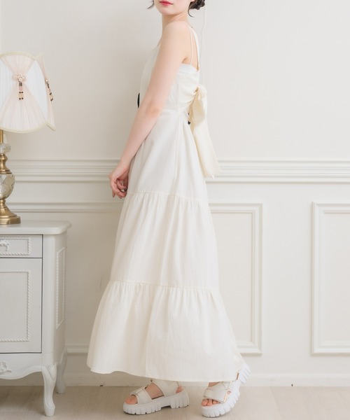 <今年の清楚なデートコーデはこれに決まり◎> ▼デザイン 大き目のバックリボンが可愛いワンピース。 ティアードデザインとふわっと広がるAラインシルエットがポイントです。 インナー次第では背中スリットデザインとしても着て頂けるので、夏らしいスタイリングに。 ▼コーディネート 1枚でスタイリングの完成するワンピース。 インナーをリブハイネックやシアーカットソーに変えるだけでオールシーズン着て頂けます。 麦わら帽子と合わせれば、夏がスタート! ------------------------------ 生地感:普通 伸縮性:なし 透け感:なし 裏地:ある ------------------------------ ▼ブランド紹介 ems excite (エムズエキサイト) “more fun more cute” 今をもっと楽しく もっと可愛いくいたい女の子に向けた girly cuteなブランド #キャミワンピース #ワンピース #上品 #フレンチガーリー #デートコーデ #バックリボン #デニムデザイン ▼注意事項 ※撮影環境やモニター環境によって実際の商品とお色味が多少異なってみえる場合がございます。 品番:ES480022T001 / 品名:Bリボンワンピース