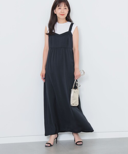 幅広いシーンに着回しの効く1枚 程良い甘さと華やぎが魅力 ■デザイン 艶やかなサテン素材と太めの肩紐が上品さをもたらすキャミワンピース。広がりを抑えた程良いボリュームで、甘すぎないデザインが魅力の1枚です。 ■コーディネート シンプルなアクセサリーやシューズとあわせて夏のきれいめスタイルに。もちろんTシャツとのレイヤードなど、カジュアルダウンしたスタイリングもおすすめです。 ■ディテール 高いウエストの切り替え位置が、脚長効果を演出。スタイルアップが叶うアイテムです。 ■サイズ 胸周りは体のラインを拾いすぎない程良いフィット感。 ■素材 見た目より軽やかなポリエステルのテキスタイル。表面にはビンテージ加工を施し、絶妙な光沢感を表現しています。 ■ケア方法 手洗い可(詳細は商品についている品質表示ラベルをご覧ください) BEAMS STAFF:H160 Size:38 ********************** 生地の厚さ:普通 透け感:なし 伸縮性:なし 光沢感:あり 裏地:なし ********************** ※光の当たり具合やパソコンなどの閲覧環境によって、実際の色味と異なって見える場合がございます。予めご了承ください。 ※商品の色味は商品単体で撮影した画像をご参照ください。