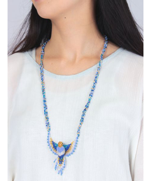 花の蜜をついばむ鳥、ハミングバード(はちどり)の爽やかなネックレス。 中米グアテマラならではのビーズの色使い☆ぜひコーディネートのワンポイントに♪ はちどりは「美しさ・愛」の象徴です。 ※こちらの商品は、職人による手作りとなります。 その為、形や色に多少の誤差が生じる場合があります。ご了承ください。 Amina Collection Co.,LTD. エスニック 中南米 ボヘミアン チャイハネ