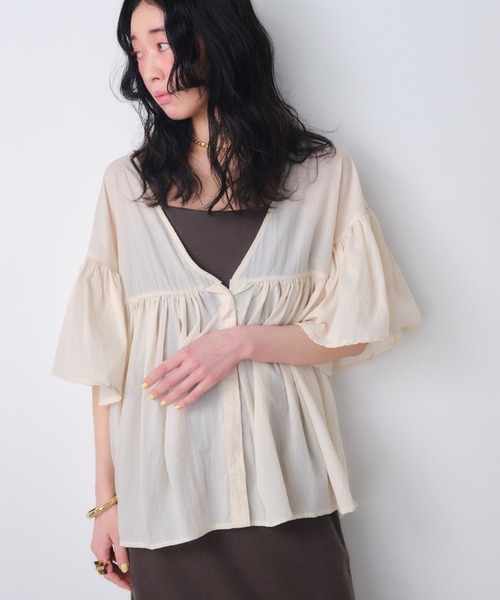 【Shelly island /シェリーアイランド】 《detail》 ・1枚でトレンド感のある印象的なコーデの完成。 ・ボリューミーな袖はふんわり華奢見せ。 ・ブラウスとしてはもちろん、羽織りとしても様々な着こなしを楽しめる優秀な一枚。 ・デイリー使いはもちろん、キャンプや海にも着ていきたくなるようなヘルシーアイテムです。 ・ノースリ-ブカットやワンピ-スとのコーディネ-トも相性抜群 《158cm staff》 ・サラッとしたナイロン素材で夏〜秋にかけて長く着用可能。 ・気になる二の腕やお腹周りをカバーしてくれるのも嬉しいポイント。 ・夏は冷房対策としてもお使いいただけます◎ ・InstagramとTikTokに着用動画も上がっていますので、ぜひご覧ください! Instagram≫≫≫【@shellyisland_official】 TikTok≫≫≫【@shellyisland_staff】 《fabric》 ・透け感:あり ・裏地:なし ・伸縮性:なし ・生地の厚さ:薄手 《staff comment》 ・ボトムスを選ばないデザインでスカートやパンツはもちろん、 キャミワンピの上から重ねたレイヤードスタイルにもおすすめです。 ・いつものコーデにプラスするだけで、お洒落さと体型カバーが叶うアイテム。 ◆商品のお気に入り登録 【♡登録のお願い】 完売カラーの再入荷通知、残り1点の通知、セール等値下げした時の通知も受け取ることができます。 ◆ブランドのお気に入り登録 新商品や再入荷など、いち早くブランドのお得な情報を受け取ることができます。 是非ご活用ください。 ※この商品は、摩擦や、汗・雨などによる水ぬれにより色落ちが生じる場合がございます。 衣服や周囲のものに色移りする恐れがありますので、白色や淡色のものと組み合わせる際は、十分にご注意ください。 ※撮影環境により多少実際のカラーと異なる場合がございます。 ※生産時期により若干の色ブレやサイズの変動が生じる場合がございます。 ※表示のサイズ感と実物は異なる場合もございます。