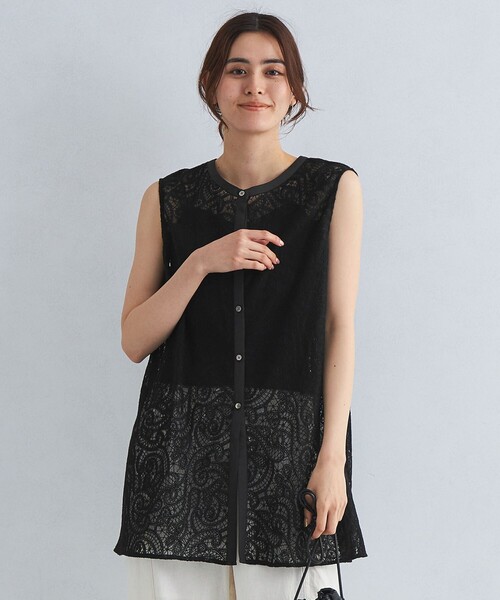 ====================骨格診断結果 【ナチュラル向き】監修:骨格診断アナリスト※他の骨格の方ももちろん着られます♪====================華やかなレースが目を惹くブラウス■デザイン洗練された印象に仕上げてくれるレースブラウス。透け感のある素材がシーズンムードを高めます。レースが軽さをプラスし、チュニック丈でも重くならないのも嬉しいポイント。前開きデザインなので羽織としても着用いただけます。■素材甘すぎないレースで上品な印象です。■コーディネート細身ボトム合わせできれいめに、ワイドパンツ合わせで今年らしい着こなしに◎同素材のパンツと合わせたセットアップの着こなしもおすすめです。・同素材のパンツのご用意もございます。対象品番:36146762680#春服,#夏服============================裏地:なし透け感:あり伸縮:なし光沢感:なしケア方法:ドライクリーニング============================【注意事項】※画像の商品はサンプルです。※商品を使用前に、タグ等に記載されている「取り扱い上の注意書き」、「洗濯表示」を必ずご確認ください。※商品画像は、光の当たり具合やパソコンなどの閲覧環境により、実際の色味と異なって見える場合がございます。あらかじめご了承ください。※商品の色味の目安は、商品単体の画像をご参照ください。店舗へお問い合わせの際は、全国のgreen label relaxing各店舗まで下記の品名/品番をお申し付けください。品名:FFC LACEチュニック BL 品番:36166763207