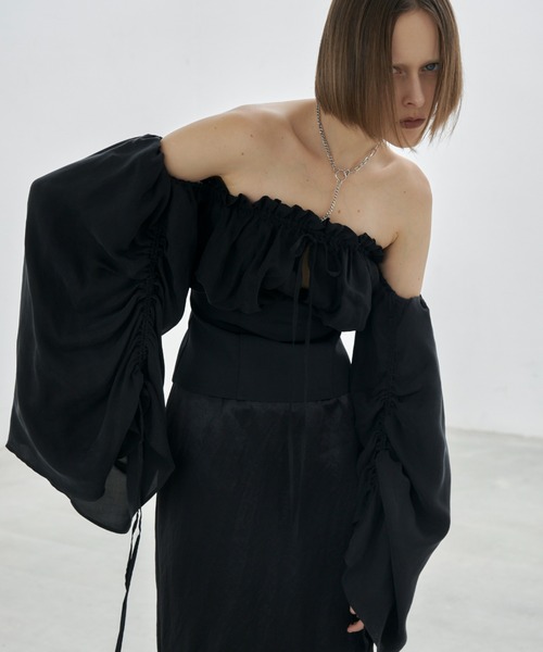 DESCRIPTION フィブリル感のあるとろみ素材とコルセットシルエットに仕上げたメリハリのある1枚。 袖にたっぷりとボリュームを持たせ、 生地が泳ぐ揺れ感のある上見頃に対し、バスト下はフットするシルエットで存在感抜群です。 ハイウエストのパンツとの相性抜群。 MATERIAL 表地:〈WHT〉再生繊維(セルロース)58% レーヨン42% 〈BLK〉再生繊維(セルロース)100% 裏地:ポリエステル90% ポリウレタン10% 別布:ポリエステル97% ポリウレタン3% 洗濯方法:水洗い不可 石油系ドライクリーニング 注意:お使いのモニターによって、カラーが違って見える場合がございます。 ※商品画像はサンプルのため、色味やサイズ、素材の混率等の仕様に変更がある場合がございますので、予めご了承ください。 ※フロント部分ですが、WHITEが正しく、胸元にはスリットがない仕様となっております。 オフショル トップス/オフショルブラウス 【JOSE MOON/ジョゼムーン】 スタンダードの中にもエッジの効いたアイテムも展開し、遊び心ある自由なスタイリングを提案 ■商品のお気に入り登録 再入荷、残り1点などの通知を受け取ることが出来ます。 ■ブランドのお気に入り登録 新商品や再入荷、ショップのおすすめトピックスなど、いち早くブランドのお得な情報を受け取ることができます。