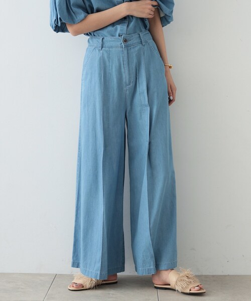 Design Point大胆にタックを入れ、ゆったりルーズに季節感を楽しめるワイドシルエットパンツ。ジャストウエストでヒップ周りをスッキリと見せ、トレンドシルエットを作ってくれます。全体のゆったりしたシルエットが華奢見せさせ、脚長効果も期待できます。ウエスト後ろ中心には穿きやすいゴム入りデザインです。Styling Point同素材のボリュームスリーブシャツ(523-88009)とのスタイリングが◎。 コンパクトなリブニットや箔素材のトップスをインして、トレンド感のある綺麗めスタイルもおすすめです。Fabric Point洗い込むことで程よい肉感と柔らかな風合いを出した軽く穿き心地の良い素材。※照明の関係により、実際よりも色味が違って見える場合があります。また、パソコン・スマートフォンなどの環境により、若干製品と画像のカラーが異なる場合もございます。店舗へのお問い合わせ商品番号:523-68007●製品寸法:36(S):総丈99cm W66cm H101cm 股下67cm 前股上32cm 渡り幅33cm 裾幅39cm38(M):総丈101cm W69cm H104cm 股下68cm 前股上33cm 渡り幅34cm 裾幅39cm40(L):総丈103cm W72cm H107cm 股下69cm 前股上33cm 渡り幅35cm 裾幅40cm備考: