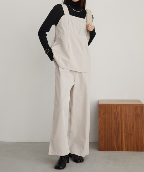 レイヤードデザインがトレンド感を高めるオールインワン ■デザイン 女性らしいシルエットが特徴のビスチェと ワイドシルエットのカジュアルなパンツを組み合わせたロンパース。 バックスタイルにはさりげないリボンをあしらいキュートさも演出。 高めのウエスト位置とセンタープレスはスタイルアップを叶えてくれて 一枚着用するだけでトレンドながらも上品な印象になるアイテムです。 ゆとりのあるデザインで体のラインを拾いすぎず、 フォーマルシーンでも品よく着られる一着。 ■素材感 生地は軽量で柔らかく サラッとしたポリエステル100%を仕様しています。 しわになりにくくお取り扱いしやすいです。 ■スタイリング 一枚でアメスリやキャミソールとあわせるのはもちろん、 シアートップを合わせるとワンランク上のスタイリングが完成します。 足元はその日の気分でカジュアルなスニーカーからヒールを合わせて いろんなスタイリングを楽しんでみて下さい。 程よいハリ感と落ち感のある上品な素材でセレモニーシーンにもおすすめです。 ----------------------- 透け感/ややあり 光沢感/ややあり 伸縮性/なし 裏 地/なし 厚 み/普通 ----------------------- ※自宅洗濯可能(単独手洗い) ※詳しいお手入れ方法は商品タグをご参照ください。 【商品のお気に入り登録】 完売カラーの再入荷通知やラスト1点の通知 プライスダウンの通知も受け取ることができます。 ぜひご登録ください◎ 【ブランドのお気に入り登録】 新商品や再入荷など、 ブランドの情報をいち早くお知らせします! ぜひご登録ください◎ ※ご注意※ ・屋外の光や照明の当たり具合で、実際の商品の色味と カラー別画像の色味に若干の違いが発生する場合がございます。 ・詳細画像と併せてご確認の上、ご注文いただきますようお願い致します。 ※ご注文いただいた予約商品のお届け時期の確認は、注文履歴ページより行えます。