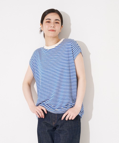 《POINT》 綿麻素材の涼しげなカットソーです。 シアー感があり程よい抜け感を演出できます。 フレンチスリーブなので一枚ではもちろん、シャツやカーディガンのインナー使いもしやすいデザインに。 《MATERIAL》 綿麻の軽やかな素材。 《COORDINATE》 夏らしくデニムの合わせがオススメ。 すとんとしたシルエットでイン、アウトどちらでも合わせやすいです。