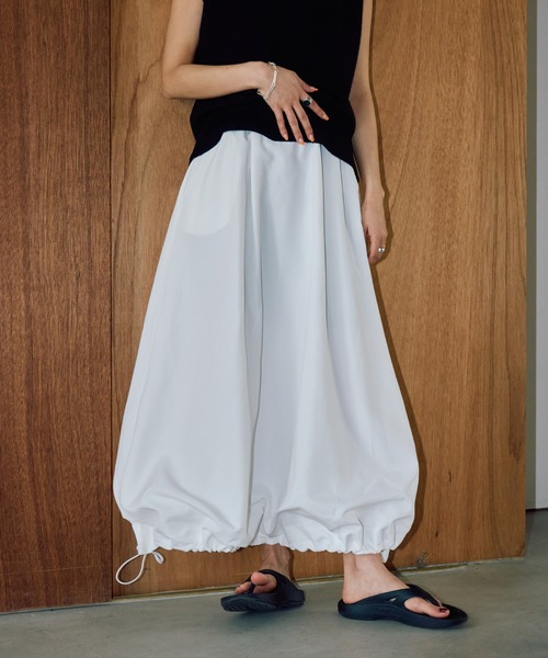 裾にドローコードが付いているのでお好みのバルーンシルエットに調整ができる便利なスカート。ウエストもゴムなのでノンストレスでご着用いただけます。丸みのあるフォルムがキャッチーで可愛らしいアイテムです。ポケットが付いているのも嬉しいポイント。《スタイリング》タイトシルエットのトップス合わせやワントーンコーデがオススメ。手洗い可能な素材なのでアウトドアでも◎裾のドローコードでお好みのバルーンシルエットに調節してみてください。アウトドア/カジュアル/ロングスカート/バルーンシルエット/夏/モード/スポーティ/トレンド/丸み/ハイウエスト/バルーンスカートLIENCOEUR(リアンクール)ー身に纏うだけで、凛とした気分にー「都会的で洗練されていながらも心地よく、ファッションを日常的に楽しむことができる」「自分のスタイルに落とし込みやすいアイテムに、さりげない新しさを」普段のクローゼットに彩りをプラス。毎日を大切に過ごす、すべての人に寄り添うアイテム・スタイルを提案します。・商品のお気に入り登録完売カラーの再入荷通知や、ラスト1点、セールの通知などお得な情報をお知らせいたします。・ブランドお気に入り登録新商品や再入荷など、いち早くブランドの情報を受け取ることができます。【注意事項】※商品を使用前に、タグ等に記載されている「取り扱い上の注意書き」、「洗濯表示」を必ずご確認ください。※商品画像は、光の当たり具合や閲覧環境により、実際の色味と異なって見える場合がございます。あらかじめご了承ください。