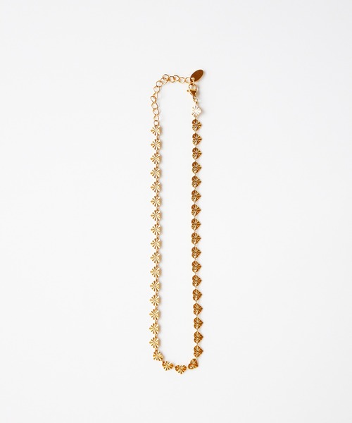 ハートのカットが繊細な魅力を放つチェーン。 優雅さと可愛らしさを兼ね備えたこのアクセサリーのシリーズは、 ボディチェーン、ブレスレット、チョーカーをご用意しております。 シンプルなデザインは、他のアクセサリーとの組み合わせも自在。シンプルながらも存在感のあるデザインで日々のスタイルに可愛らしさをプラスしてみては。 デリケートなお肌の方にもおすすめ。023006※素材の特性上、通常のアイテムより重みのある仕上がりになっています。表面に多少の凹凸、気泡、小さな傷などがある場合がありますが加工の特性上発生するものです。※職人の手作業で最終加工しております。風合いや色味、サイズに多少個体差があります。ご留意くださいませ。