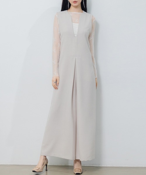 ゆったりと幅広な着心地でさり気なくボディラインをカバーします。フロント部分は股上より高い位置にタック加工を施した秀逸デザイン。 自然なシルエットで脚長効果も抜群◎シティガール 胸元はインナーとのレイヤードが楽しめるディープVネックデザイン。 インナー次第でクールにもフェミニンにも変幻自在なアイテムです。 ハンカチなど、ちょっとしたものを入れるのに便利なサイドポケット付き。