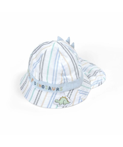 フロントのテープ部分にほどこした恐竜モチーフのタブが可愛いベビー用ハット。 恐竜のタブはカラーごとに異なるモチーフで悩める2色展開です。 ホワイト系:さわやかなストライプ柄に「ステゴサウルス」 ブルー系:サングラスをかけてウキウキな太陽や錨、ヤシの木など、夏らしいアイテムを集めたプリント柄には「ティラノサウルス」 立体的な恐竜のヒレで後ろ姿がとってもキュート。 後ろ姿にもこだわったアイテムになっています。 春夏の日差しからベビーの頭を守るハットはアウトドアやレジャーはもちろん、通園やおさんぽなどマルチに活躍するアイテムです。 アゴ紐で風の強い日にも飛ばされる心配もなく安心です。 ブルー系は同じプリント生地を使用したお兄ちゃんサイズのハーフパンツ(1810-63256)も展開しているのでさりげないお揃いコーデもおすすめ◎ ※柄の出方は生地の裁断により一点一点異なります。 2024年春夏男の子アイテム。 【SLAP SLIP(スラップ スリップ)】 ~子どもの欲しいをカタチに~ ヨーロッパのこどものように 子どもらしい今しか着れないナチュラルなかわいさを提案 どこか上品で清楚感漂うフレンチカジュアルは いつものコーディネートをさりげなく格上げ