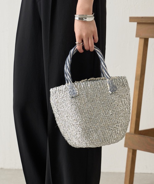 これからのシーズンにぴったりのシルバーのハンドメイド編み込みバッグ【POINT】・丈夫な素材、サイザル麻で編み立てられたトートバッグ。・持ち手の柄もスタイリングのアクセントに。・ちょっとしたお出かけにちょうどいいサイズなので、デイリー使用に最適です。【素材】サイザル アクリル プラスチック【Africansquare/アフリカンスクエア】素材・デザインのオリジナリティに加え、アフリカンハンドメイド製品ならではの「味わい」が特徴。新鮮な驚きと温もりを与えてくれます。 アフリカ各地の優れた伝統工芸品をご紹介するだけではなく、アフリカンデザインと、日本のトレンドをミックスした、ワクワクするような商品を提供しています。【気になる商品は「お気に入り」登録を】ハートマークをクリックし、お好きなカラーを選んでお気に入りに登録すると入荷情報や残り1点の通知、完売カラーの再入荷、セール情報などを受け取ることができます。※撮影場所やお使いのモニター環境により若干お色味が異なる場合がございます。特にロケの撮影では明るく見える傾向にございます。詳細撮影画像で色味をお確かめくださいます様お願いいたします。※予約商品はサンプルで撮影をしております。若干の仕様が変更になる場合がございますので予めご了承の上ご注文くださいますようお願いいたします。※予約商品のサンプルでの採寸のためあくまで目安となります。予めご了承ください。