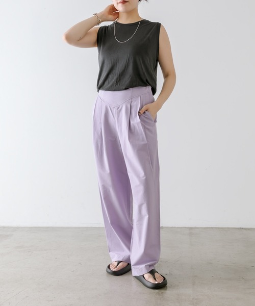 伸縮性のある素材で感動の動きやすさ! スタイルアップも叶えてくれるストレッチパンツ センターから骨盤に向かって斜めに入った切り替えしデザインが印象的なパンツ。 履くだけでスタイルアップを叶えてくれる優れもの。 一見ウエストはキュッと締まっているように見えますが、バックウエストはゴム仕様なので安心です。 ゴムを引っ張ってボタンで留めてウエストを調整することもできるようになっています。 また、伸縮性に優れた素材を使用することでとにかく動きやすく、締め付けすぎない着心地が心地いいです。 お仕事の方で動き回ることが多い方や、お子さんとの遊びなどでアクティブに動き回るシーンなどにもおすすめ。 肌触りは滑らかで、カジュアル過ぎない見た目もポイントです。 加えて、レーヨンも含む素材なので通気性も◎ かなり暖かくなっている最近の気温にはぴったりの素材感です。 ■ポイント ・ウエストの切り替えしでスタイルアップを叶えてくれる ・左サイドにファスナー付き ・後ろウエストのみゴム仕様 ・ゴムは調整ができる ・伸縮性のある素材仕様 ・締め付けすぎず動きやすい履き心地 ・アクティブなシーンにもおすすめ ・カジュアル過ぎない印象 ・レーヨンを含む素材で通気性◎ ・春夏の気温が高い日にぴったりのパンツ ・サイドとバックにポケット付き ■サイズ追記 ・サイドファスナー:21.5㎝ ■素材感 ・・・・・・・・・・・・・・・・・・・・・・ 透け感:なし 裏地:なし 伸縮性:あり 光沢感:なし 生地の厚さ:やや薄手 ・・・・・・・・・・・・・・・・・・・・・・ ■スタッフコメント スタッフH/身長161㎝ サイズ感:ウエストはちょうど良い。ヒップから下は余裕あり。 素材感:シワにならない速乾のストレッチ素材。座ってもお腹周り苦しくないのが嬉しい! 着用感:タック入りで腰回りからゆとりがあり運動できそうなレベルで楽ちんです。 ストンと縦ラインが生まれ美脚効果あり。 スタッフN/身長161㎝ サイズ感:ウエストはゴムで調節可能太ももから下がゆったり 素材感:さらっとシワがつきにくい 着用感:ウエストとお尻はゴムの調節無しでピッタリ、透け感無し 【SUM1 STYLE(スミ スタイル)】 メンズライクの中より溢れ出る女性らしさ 動きのある大人の新しいニューカジュアル 自らファッションを創り出す人々に提案 SUM:統合 1枚で決まる洗練されたスタイル SUM:総和 生地と生地、柄と柄、無限の組み合わせの答え SUM:和 人と人、洋服 SUM:要点 デザインを明確に伝えるインパクト 《お気に入り登録》でお得な情報がいっぱい! ・「商品のお気に入り登録」で入荷情報や、ラストの通知、セール・クーポンの通知などを受け取ることができます! ・「ブランドのお気に入り登録」で新商品や再入荷など、お得な情報を受け取ることができます!