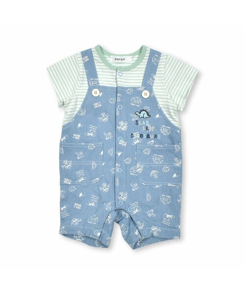 Tシャツとデニムのサロペットを重ね着したようなデザインがオシャレな半袖ロンパース。 ネイビー:マルチボーダーのTシャツに無地のネイビーサロペット ブルー系:淡いグリーンとオフホワイトのTシャツにサングラスをかけてウキウキな太陽や錨、ヤシの木など、夏らしいアイテムを集めたプリント柄のサロペット。 お兄ちゃんが着ているみたいなサロペットでベビーもウキウキ。 男の子が大好きな恐竜の背びれが後ろについているから座った時やハイハイしたときの後ろ姿がとってもキュート◎ スナップボタンで全開になるので、首が座る前の赤ちゃんに着せやすく、新米ママにもおすすめ! 股下にもスナップが付いていて、足をバタバタしてもはだけにくく、オムツ替えもラクラクな設計になっています。 ブルー系は同じプリント生地を使用したお兄ちゃんサイズのハーフパンツ(1810-63256)も展開しているのでさりげないお揃いコーデもおすすめ◎ ※脇ポケットあり。 ※柄の出方は生地の裁断により一点一点異なります。 2024年春夏男の子アイテム。 【SLAP SLIP(スラップ スリップ)】 ~子どもの欲しいをカタチに~ ヨーロッパのこどものように 子どもらしい今しか着れないナチュラルなかわいさを提案 どこか上品で清楚感漂うフレンチカジュアルは いつものコーディネートをさりげなく格上げ