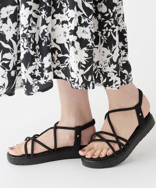 アフタヌーンティーオリジナルで人気のスポーツサンダルが再登場。 細い形状ながら、紐の中にクッション性を持たせることで足あたりの良いソフトなタッチに仕上がりました。かかと部分にもゴムを入れ、足が痛くなりにくい工夫をプラス。程よく高さのあるソールでロング丈のワンピースなどを合わせても足元が映えるデザインです。グリップ力のある靴底で踏み込みやすく、普段使いにもぴったり。落ち着いた色味なので、柄物とも好相性に決まります。パンツとのスポーティーテイストにも、スカートスタイルをカジュアルダウンするのにもおすすめ。フットワークが軽くなるはき心地でおでかけしてはいかがでしょうか。 *サイズ/(M)23.5~24.0cm、(L)24.0~24.5cm *【M:23.5~24.0cm】アウトソール24cm/幅9cm *【L:24.0~24.5cm】アウトソール25.5cm/幅9.5cm