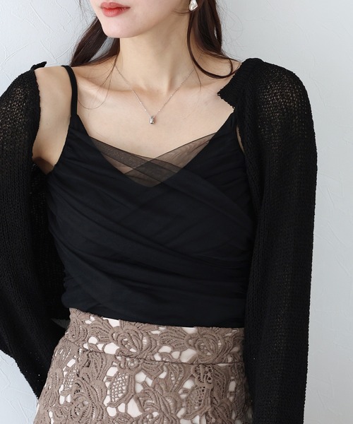 トレンド感のあるフェミニンなチュールキャミソール ◦POINT チュールを重ねて繊細な表情を作り出したシアーレイヤードキャミソール。 シンプルなスタイリングにプラスするだけでおしゃれ見えしちゃいます◎ 肌に触れる部分は伸縮性の良いリブ生地でラクに着こなせます。 カップ付きなので下着に困らないのもうれしいポイント。 ◦STYLING 一枚で着るのはもちろん、シャツを羽織ったりインナーと合わせたり ビスチェとしても使えるのでロングシーズン、多様なコーデでお楽しみ頂けます。 ワントーンコーデのアクセントにもおすすめです。 ◦DETAIL カップ付き クロップド丈 ◦FABRIC 伸縮性のあるリブ素材&透け感が魅力的なチュール素材 [ コーディネート ] ショートボレロカーディガン 75162438(ZOZO)512313-5696(店舗) 半袖ケーブル柄リボンカーディガン 74574500(ZOZO)512312-5683(店舗) パール付きハイウエストデニムパンツ 75458031(ZOZO)542326-6342(店舗) フラワーレースタイトスカート 65110316(ZOZO)542214-3733(店舗) [ 商品のお気に入り登録 ] 完売カラーの再入荷通知や、値下げのお知らせ、ラスト1点の通知などが受け取ることができます。 随時再入荷していますので、お気に入り登録して頂くと再入荷情報がGET出来ます。 [ ブランドのお気に入り登録 ] 新商品の発売や再入荷、タイムセールやクーポン発行のお知らせなど BLUEEASTのお得な情報を受け取ることができます。ぜひご登録ください♪ ※撮影環境により、モデル着用画像は実際の商品と色味が異なって見える場合がございます。 また、PCやスマートフォンの環境により画面上と実物では多少色が異なって見える場合がございます。 トルソー画像が実際の商品に一番近いお色となりますのでご確認ください。