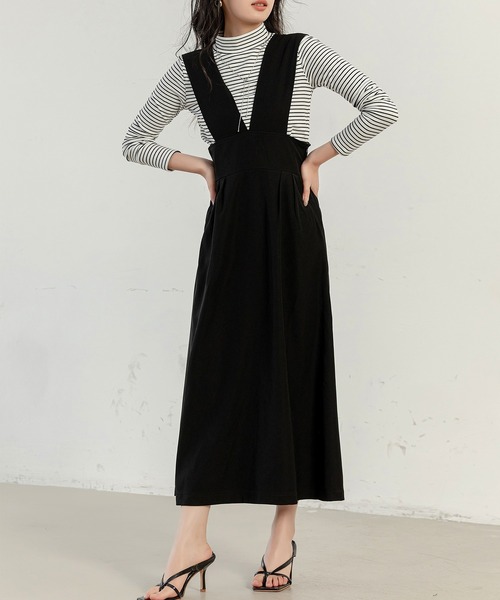 ■レディース サロペットスカート ジャンスカ 「すらっと細見え」Vネックジャンスカ VNECK JUMPER SKIRT ■SIZE:S/M ◆アイテムのお気に入り登録◆ ハートマークをクリックしてお気に入り登録しておくと、 本アイテムが“あなただけのタイムセール”候補になります! 他にも本アイテムのプライスダウン情報・再入荷・ラスト1点など いち早くお得な通知を受け取ることができます! 深めのVネックがアクセントになるきれいめジャンパースカート 上品なフレアシルエットでデザイン性のあるサロペットスカート。 体型カバ ーだけでなく、ハイウエスト&フロントタックで脚長効果も。 トップス次第できれいめやカジュアルなど様々なスタイリングが楽しめるので 1枚は持っておくと便利なアイテムです。 Fablic ハリのあるツイル生地&裏地はさらっとした生地感 デザイン性も機能性も充実 Detail Point Detail 1 すっきり小顔効果も◎Vネック お顔周りを明るくすっきり見せてくれるVネック。 Detail 2 楽なのにきちんと見えウエストシャーリング ウエストの後ろ部分のみシャーリングデザインなので、 綺麗なシルエットに仕上がります。 Detail 3 スタイルアップ効果ウエスト切り替え ウエストの位置を高く見せて、脚長効果も期待できる。 Detail 4 着脱しやすくするホック&ファスナー 脇下にはホック&ファスナーが付いており、着脱も楽々。 Detail 5 あると便利!ポケット付き 両サイドポケットが付いているのでスマホやハンカチを入れたりと便利に使えます。 Detail 6 透けるのを防ぐ裏地付き 裏地付きのしっかりとした生地で安心して着用できます。 ■MODEL 164cm/47kg B:81/W:62/H:88 着用サイズ:M 【商品仕様】 ・生地の厚さ:中厚手 ・伸縮性:なし ・透け感:なし ・裏地:あり 【セット内容】 ・1点 ・ジャンパースカート ◆ブランドのお気に入り追加◆ セールやクーポン配布情報/新作アイテムの入荷/ショップニュースなど ブランドの最新情報を受け取ることができます。 Instagram > @day_closet1203 tiktok > @daycloset.official ●サイズ表をご確認の上、お間違いのないようご購入下さい。 ※サイズは平置きで測定しております。 サイズは、実寸サイズを測っているため多少誤差がでる場合があります。 製造工程の関係上、各採寸箇所実寸(平置き)より【約-3cm~+3cm】程度は 誤差の許容範囲とさせて頂いておりますので、予めご了承くださいませ。 ●商品・着用者によっては多少の誤差がある場合がございます。 ●生地の取り方により、柄の位置等写真と異なる場合がございます。 ご了承ください。